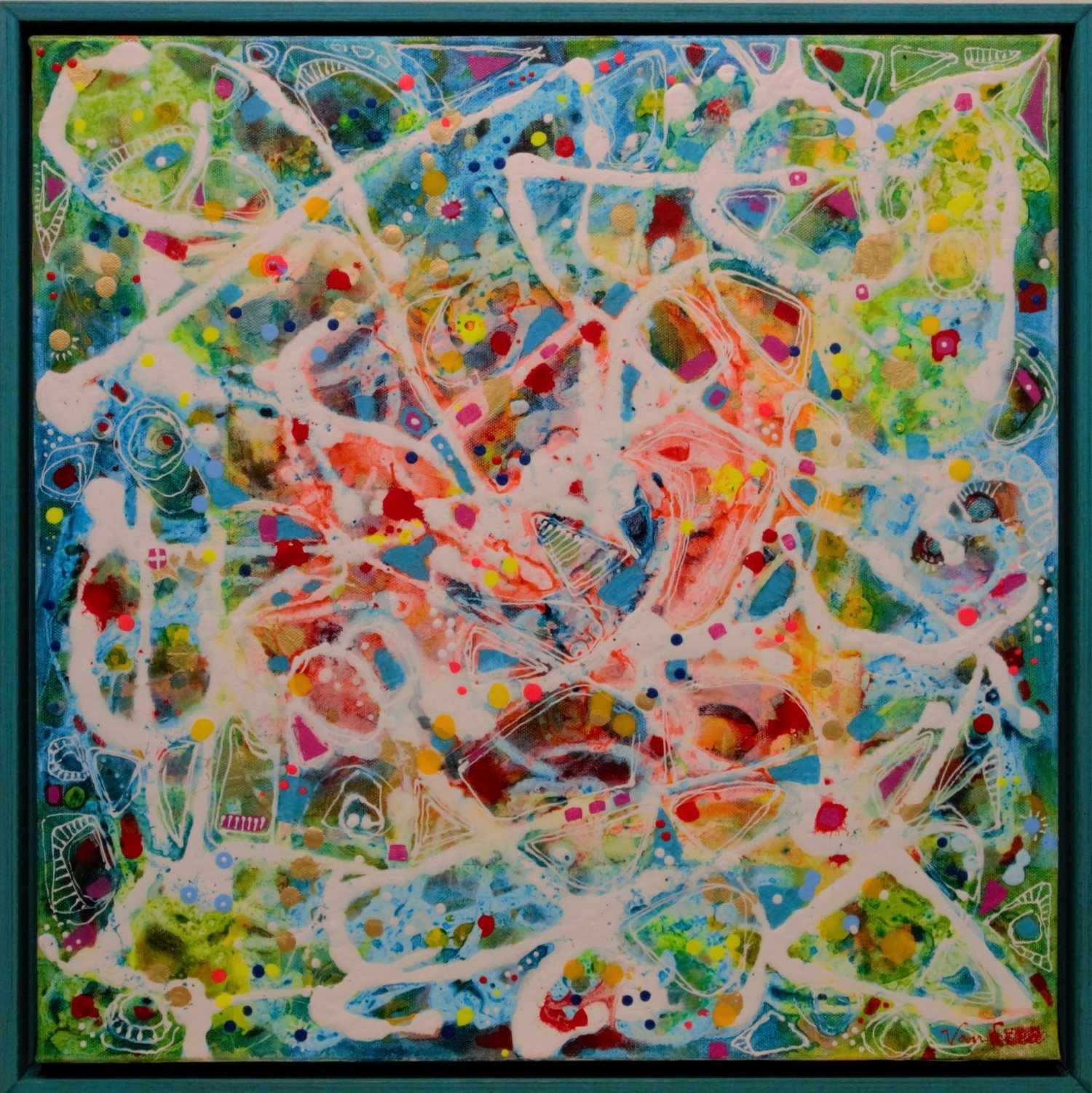 All listed are acrylic paintings. Majority are on canvas and framed unless noted.